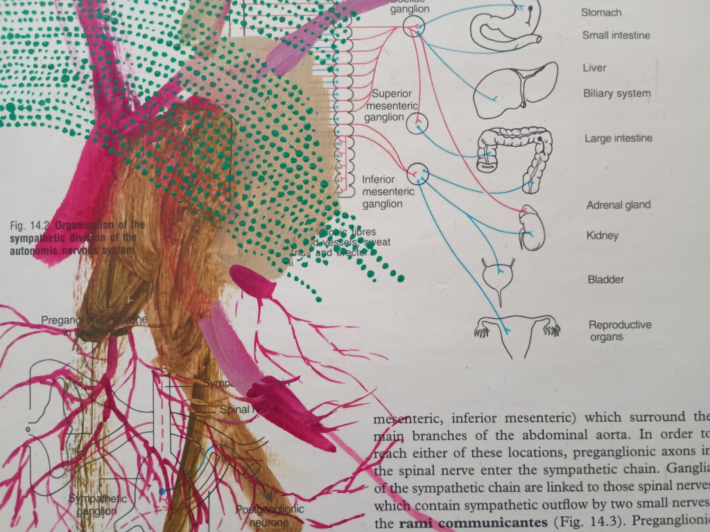 struggling to combine the clear devotion with a proliferation of anxiety the polarities of fragmentation and synthesis remonstrating with the comfortable years I heard it’s all about how it relates to your own life reaching for clarity by bending and twisting the torso which results in a barely detectable arrested coiling from side to side with the satin skin and the moisture that leaks from around your features offering the salvation of cleansing fluid applied to the face and the innocence of liquid as it runs off the land some have absences cut until the material barely holds together there’s softness and tenderness in writing where colours become pale and the words become froth and foam caressing and moisturising the skin